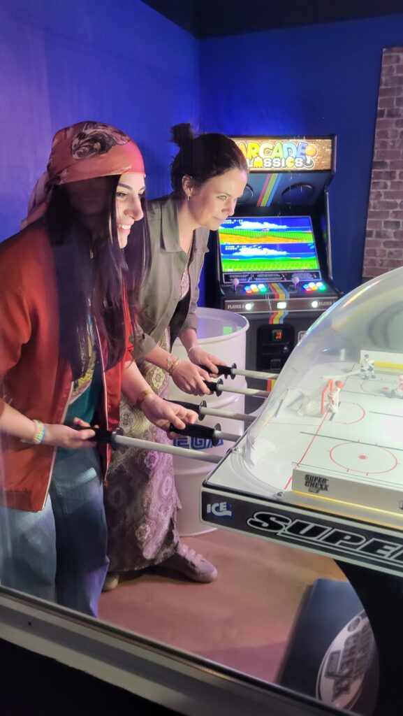 Retrouvez les bornes d’arcade multijeux, les tables cocktails 4 joueurs, les babyfoots, le surprenant baby hockey Super Chexx, et même une Game Boy géante plus vraie que nature !